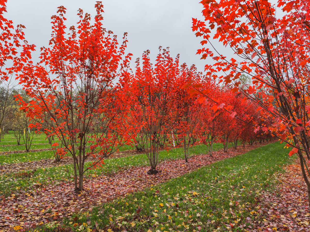 The right time to plant Acer rubrum 'Brandywine' is during the dormancy period. In Western Europe, Acer rubrum 'Brandywine' with root balls can generally be planted from mid-November to late April, although this depends strongly on the climatic conditions and the species of tree.