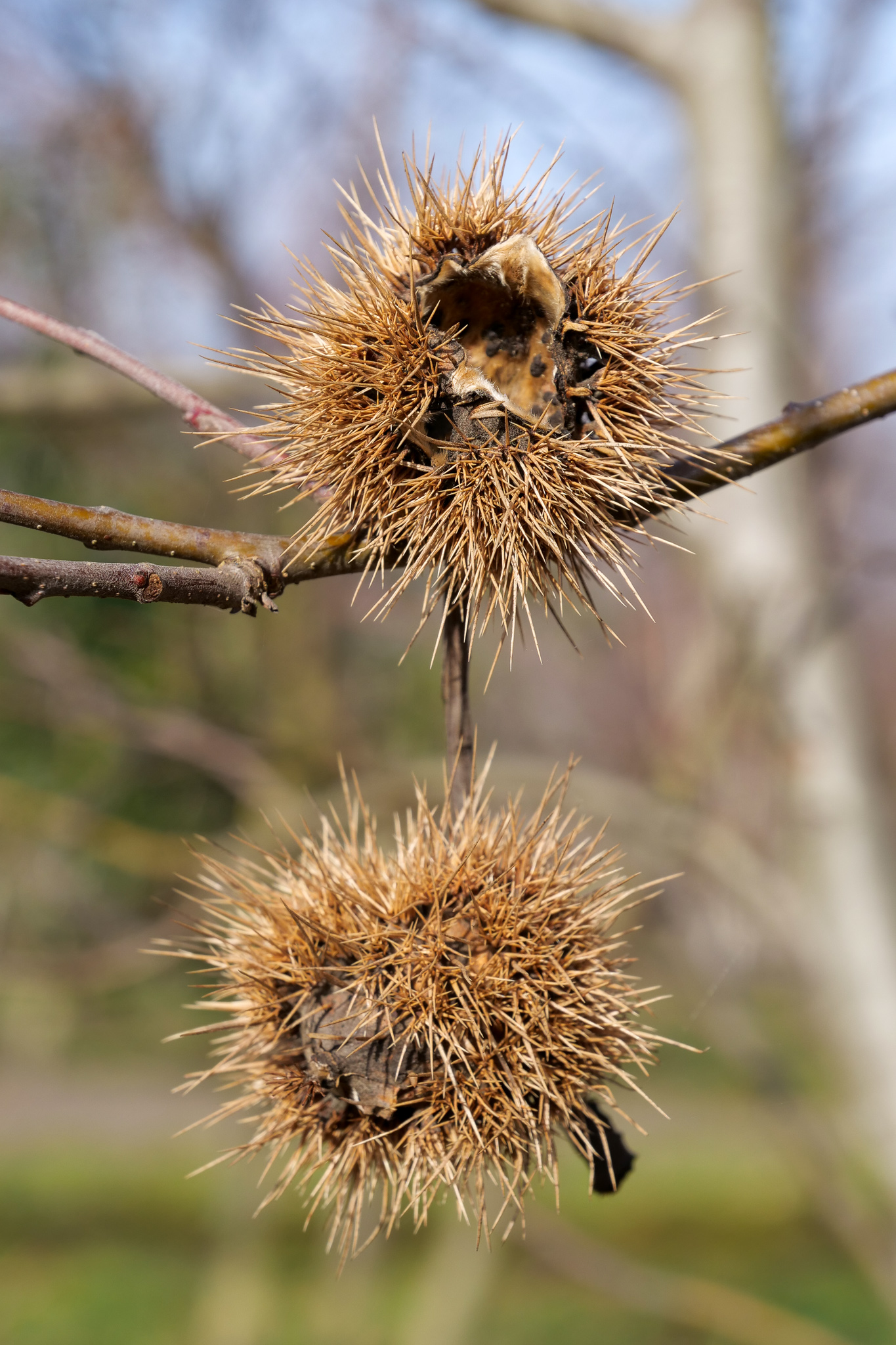 spiky husk with 2 - 3 nuts (chestnuts), edible fruits