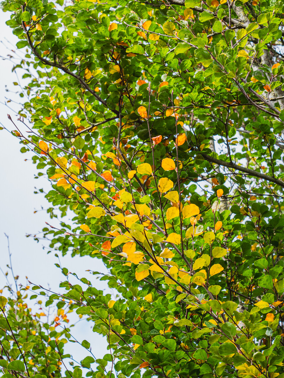 The leaves of Fagus sylvatica 'Rotundifolia' turn amarillo in autumn.