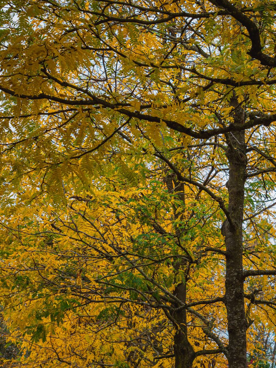 The leaves of Gleditsia triacanthos f. inermis turn amarillo in autumn.