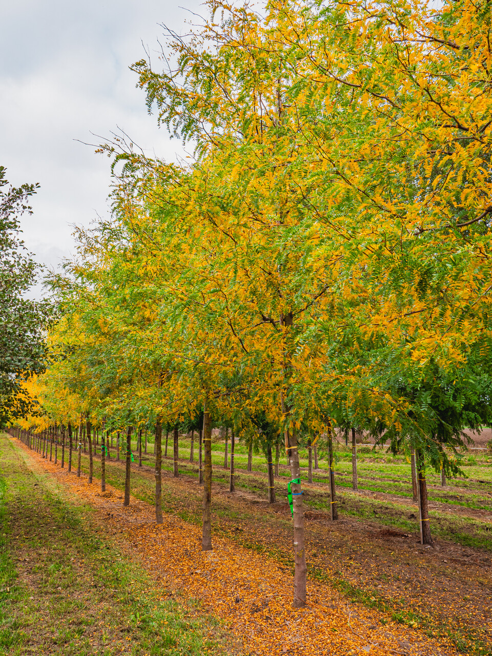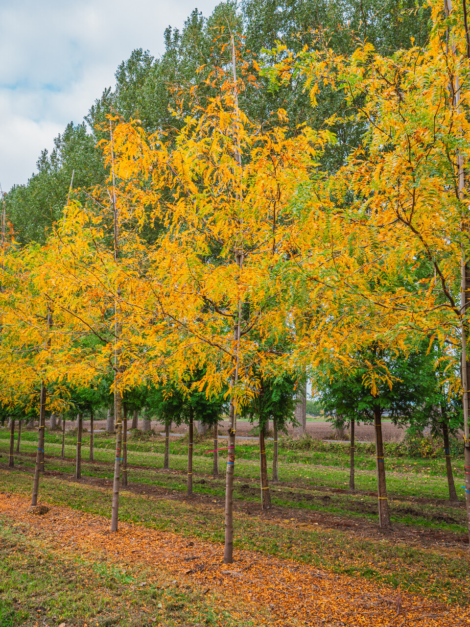 The leaves of Gleditsia triacanthos 'Sunburst' turn amarillo in autumn.