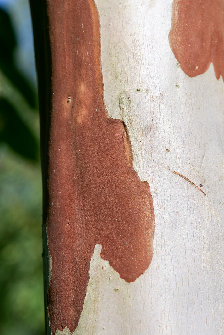 Derivado de un cruce entre Lagerstroemia indica y L. fauriei, 'Natchez' es uno de los mejores híbridos de este género. Forma un árbol de 6-9 m de altura con una copa redondeada. La corteza marrón canela, que se desprende de un color marrón grisáceo más claro, es una importante característica añadida. En verano, las hojas lustrosas de color verde oscuro se vuelven de color naranja a rojo en otoño, dependiendo de las condiciones locales y de la temperatura. En la segunda mitad del verano se abren las flores blancas, dispuestas en densas panículas de hasta 30 cm de longitud. Los pétalos suelen tener flecos, lo que da a las flores un aspecto "esponjoso". Los estambres amarillos añaden un sutil toque de color. Crece en cualquier tipo de suelo.
