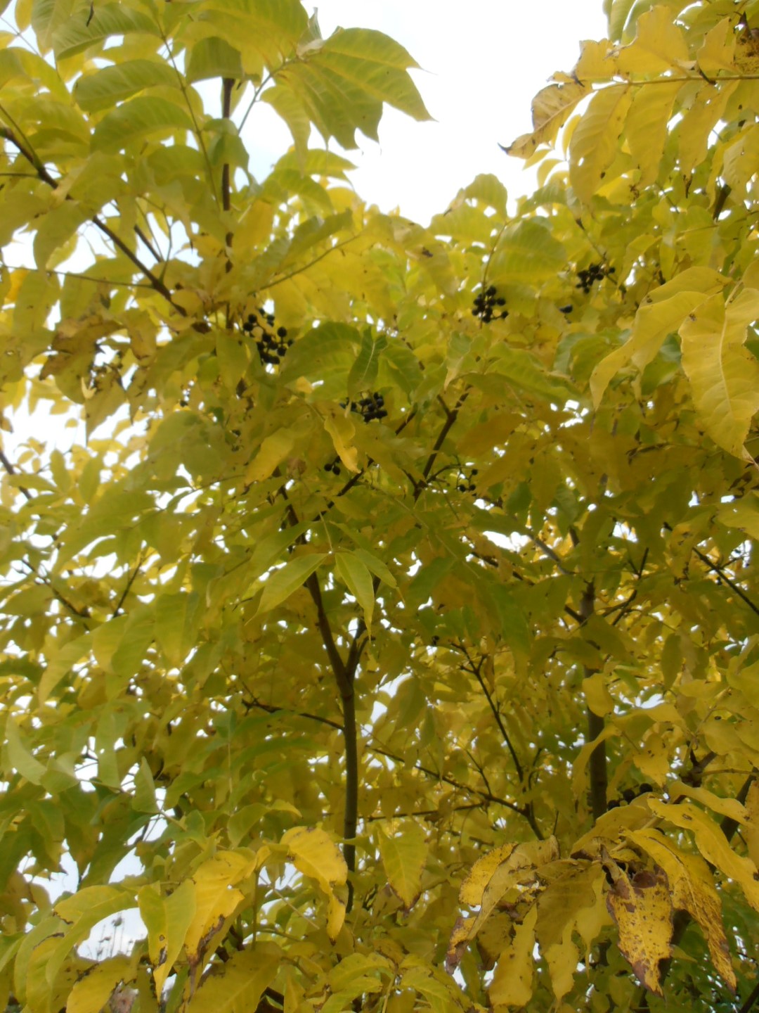 The leaves of Phellodendron amurense var. lavallei turn amarillo in autumn.