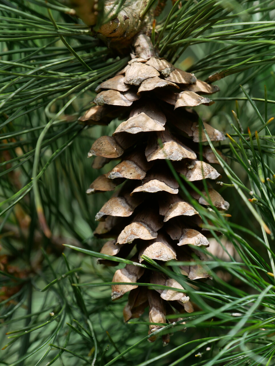 needles, 5 together, greyish green, 7 - 11 cm, evergreen