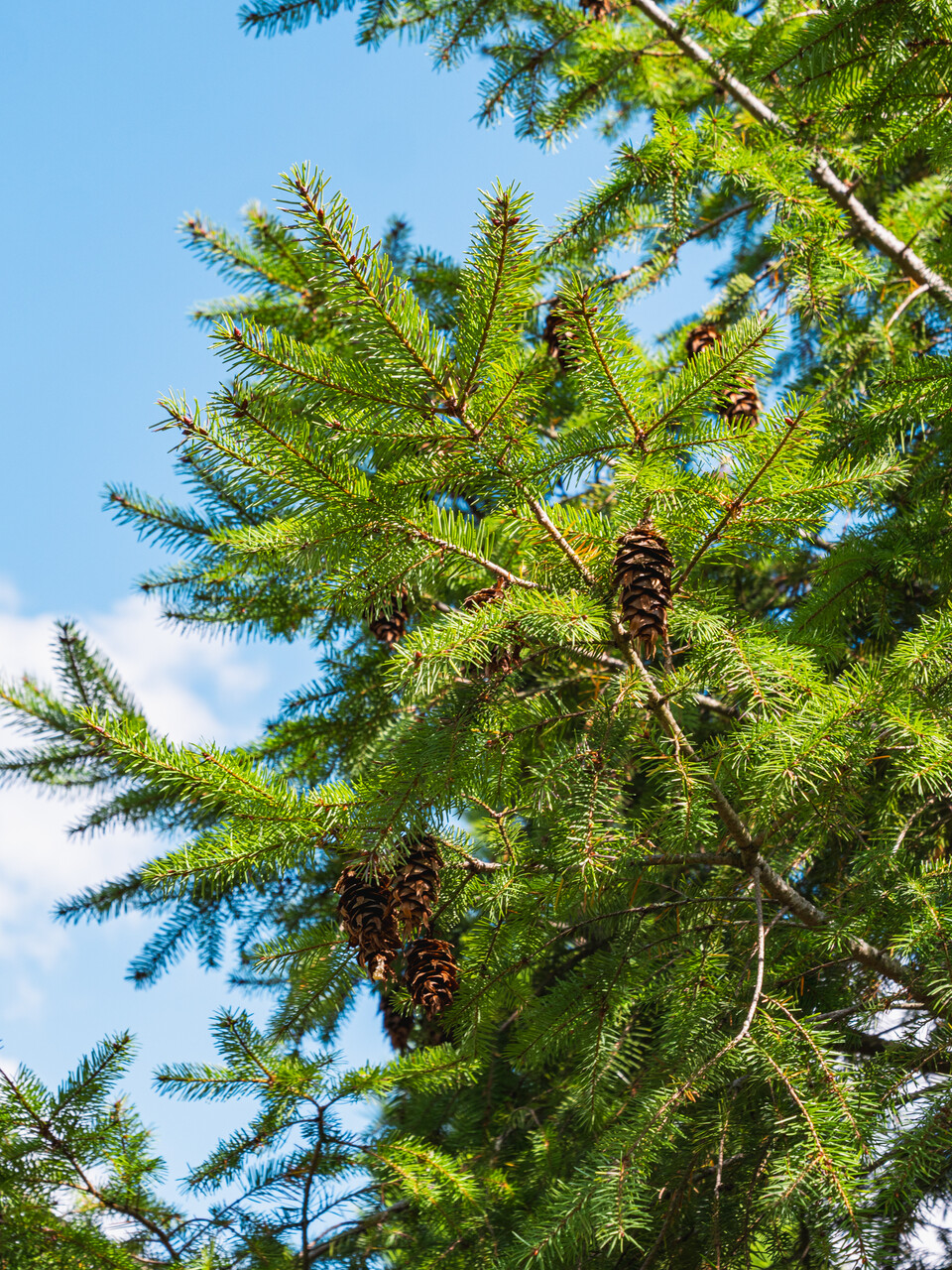 árbol de tronco alto, conífera de tronco alto, conífera solitaria