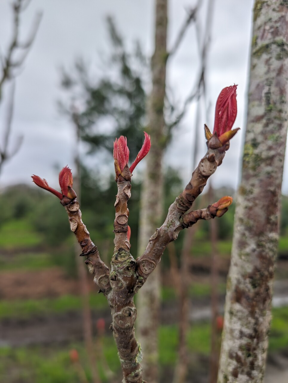 twigs copper-coloured and hairy, bark brown-grey with longitudinal splits