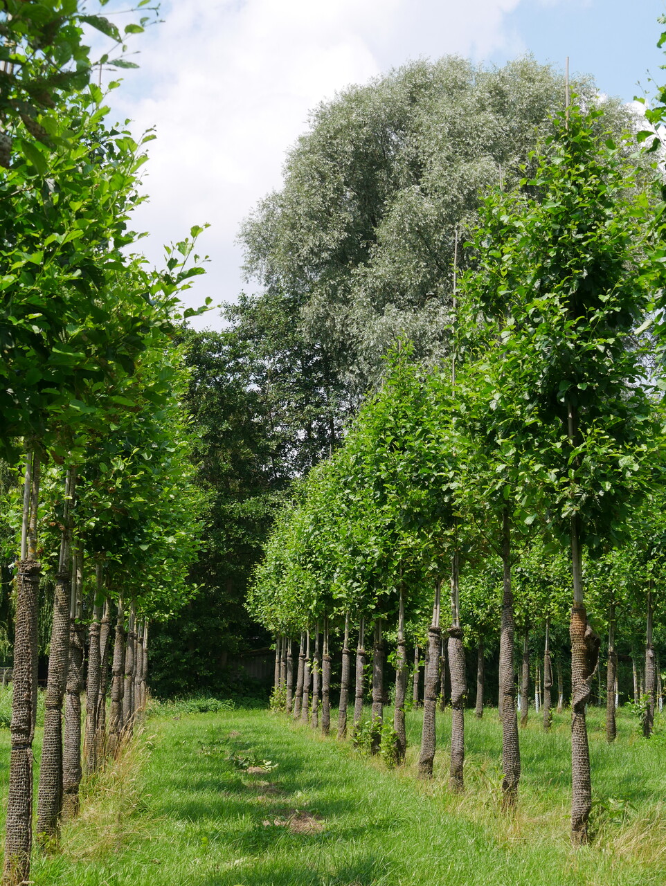 El Alnus glutinosa (aliso común) es originario de casi toda Europa y crece principalmente en zonas húmedas. Crece en forma de árboles robustos, a veces de varios tallos. Ocasionalmente se encuentra algún ejemplar maduro de más de 20 m de altura. Las hojas dispersas alcanzan los 10 cm, son ovadas y tienen la parte superior redondeada. Las yemas con tallo son de color gris-violeta y las hojas jóvenes son pegajosas al tacto (glutinosa=pegajosa). Los amentos femeninos son ovales y discretos, de ± 0,5 cm de longitud, y los masculinos, amarillo parduzco, de ± 7 cm de longitud. Los plantones de aliso aparecen a partir de septiembre y permanecen en el árbol durante mucho tiempo. El árbol echa raíces firmes y bastante profundas y tolera mal la pavimentación. A menudo se utiliza como madera de relleno en paisajismo. No tiene problemas con la poda gruesa. Poco sensible al viento (marino).