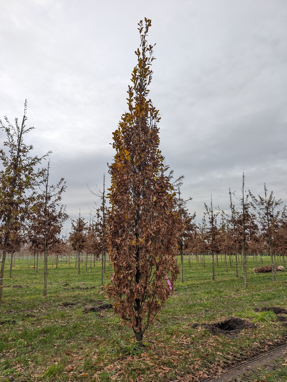 The right time to plant Quercus robur 'Fastigiate Koster' is during the dormancy period. In Western Europe, Quercus robur 'Fastigiate Koster' with root balls can generally be planted from mid-November to late April, although this depends strongly on the climatic conditions and the species of tree.