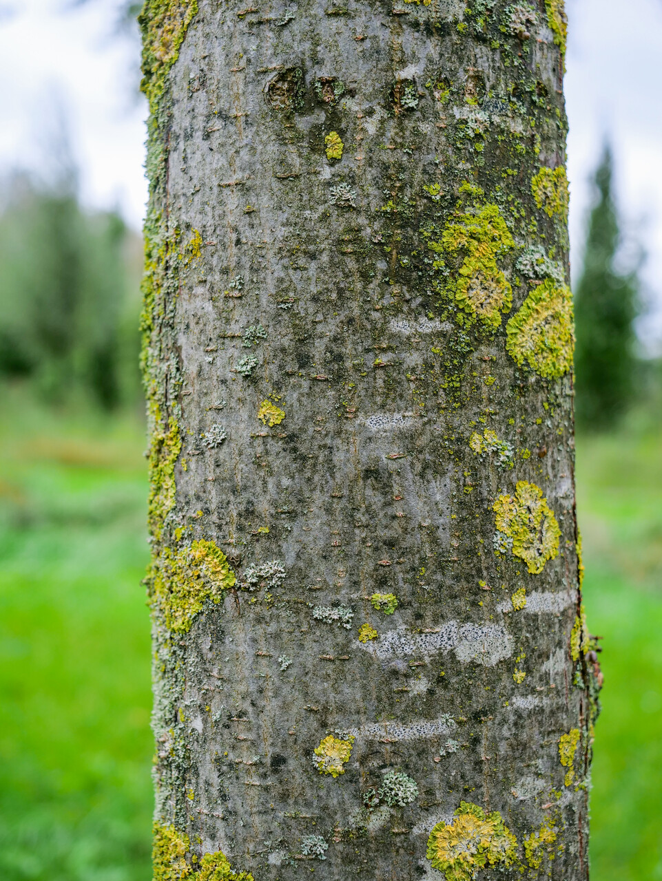 smooth, silver-grey, later with blackish-grey grooves, twigs olivegreen