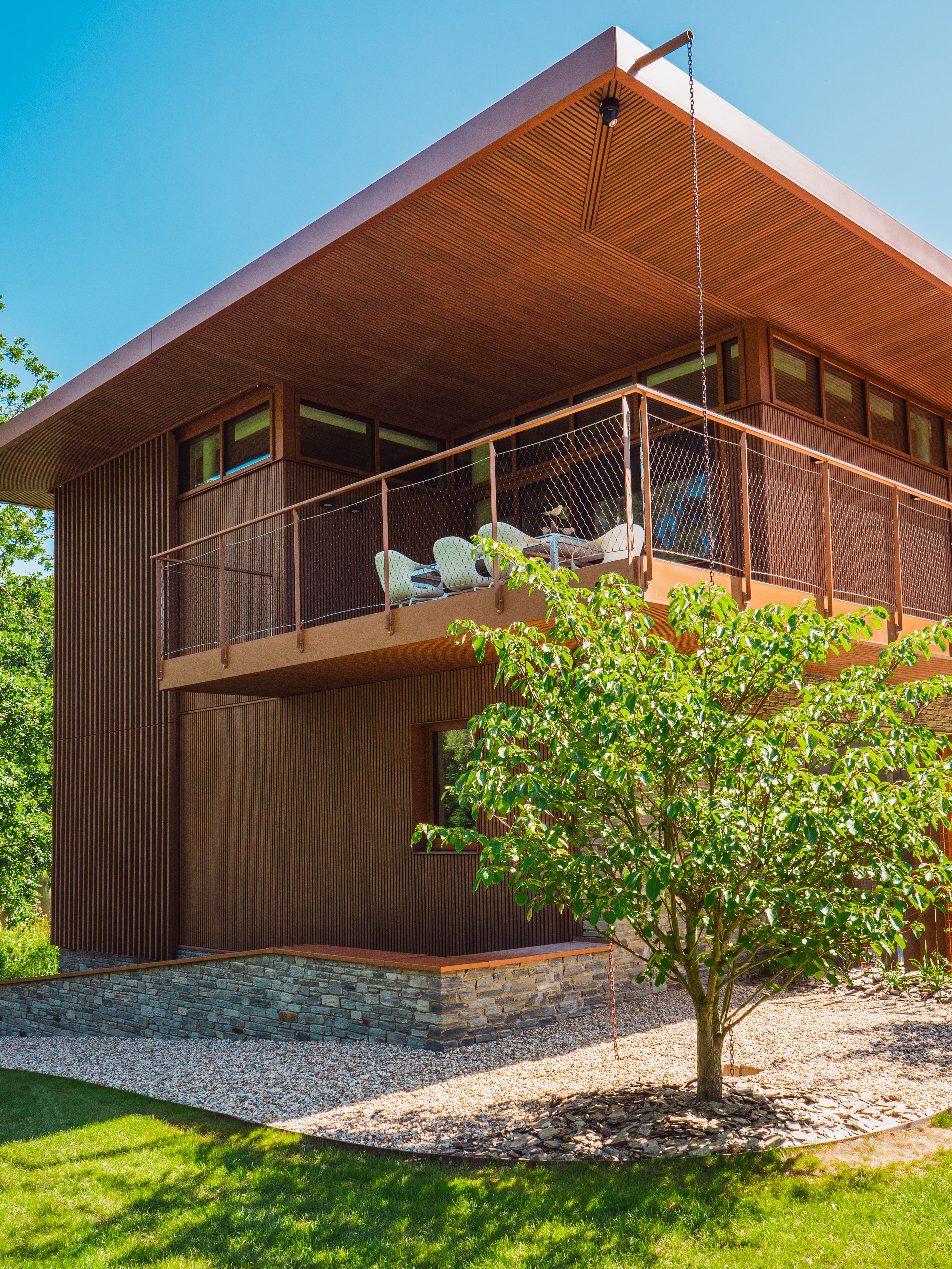 Alrededor de la moderna vivienda, realizada en un encantador estilo retro, se han plantado numerosos árboles. Estas plantaciones verdes aseguran que el jardín se integre sin problemas en el paisaje circundante y ofrezca un decorado atmosférico diferente en cada estación. El conjunto forma una imagen magnífica de la que los residentes disfrutarán durante muchos años.
