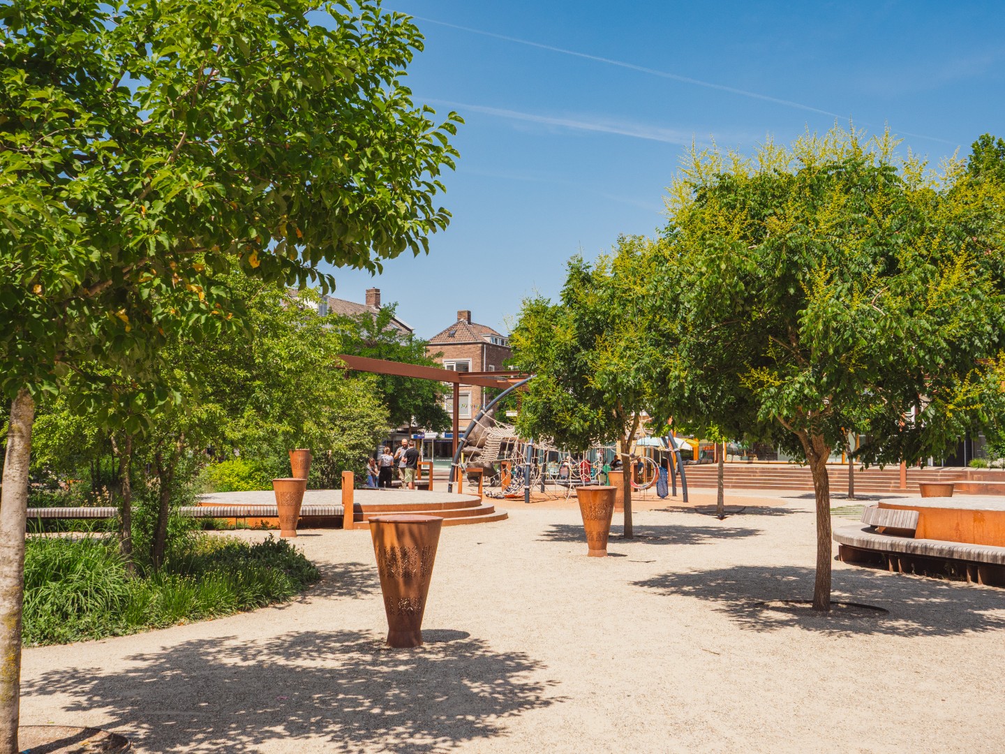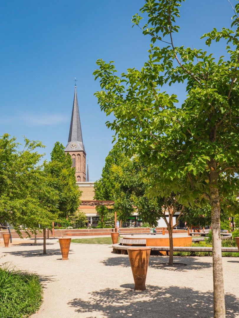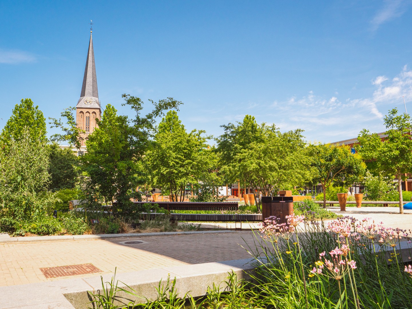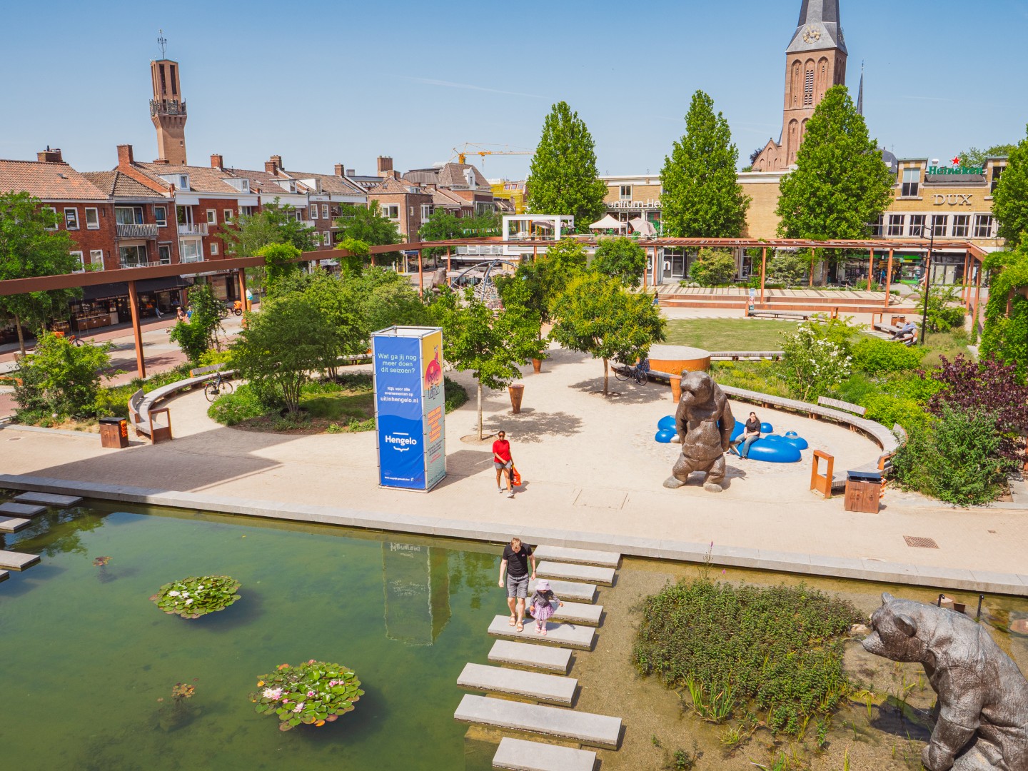 La plaza del mercado de Hengelo se rediseñó en 2023. Donde antes había una plaza árida y pavimentada, ahora se ha creado un espacio público verde como parte de la renovación urbana. Para este proyecto se suministraron árboles con un perímetro de tronco de 30–35 cm y varios árboles de múltiples troncos de hasta 300–400 cm de altura. Todos los árboles se colocaron con un sistema de almacenamiento de agua.