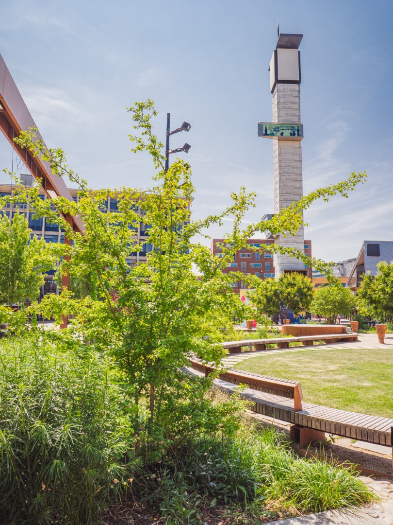 La selección de especies de árboles se basó en la resistencia climática y la biodiversidad. Se suministraron, entre otros, Tilia cordata ‘Greenspire’, Robinia pseudoacacia ‘Semperflorens’ y Koelreuteria paniculata, así como árboles de múltiples troncos como Cornus kousa, ‘China Girl’, Malus toringo y Amelanchier lamarckii.